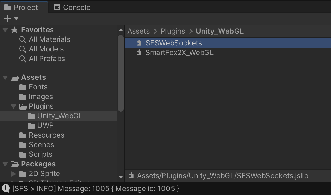 Before I pasted the SFSWebSockets.jslib in Plugins folder. I'm assuming the issue was with the Path info.