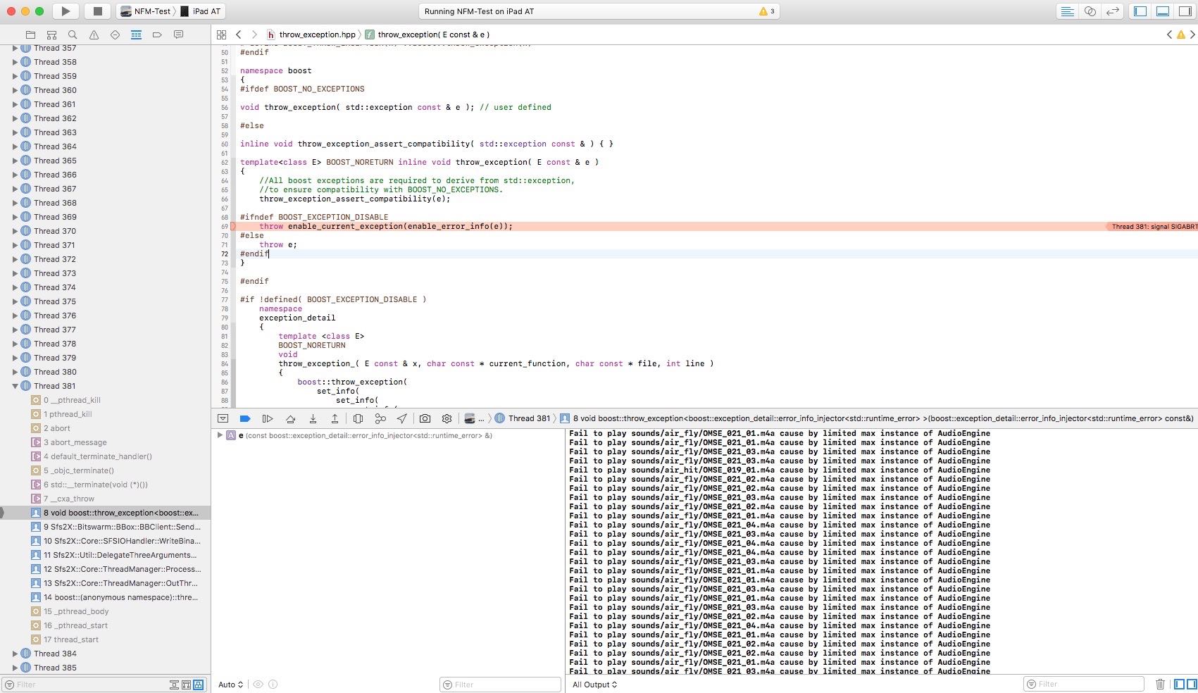 1. When I run game and play for a while, these bugs are still happened parts concerning “Thread”