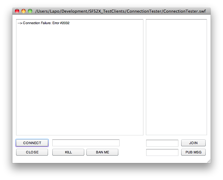 - Try to connect to server which is offline. I see the security error message in the console for the SWF, but my OnConnection callback is never called with a failure.