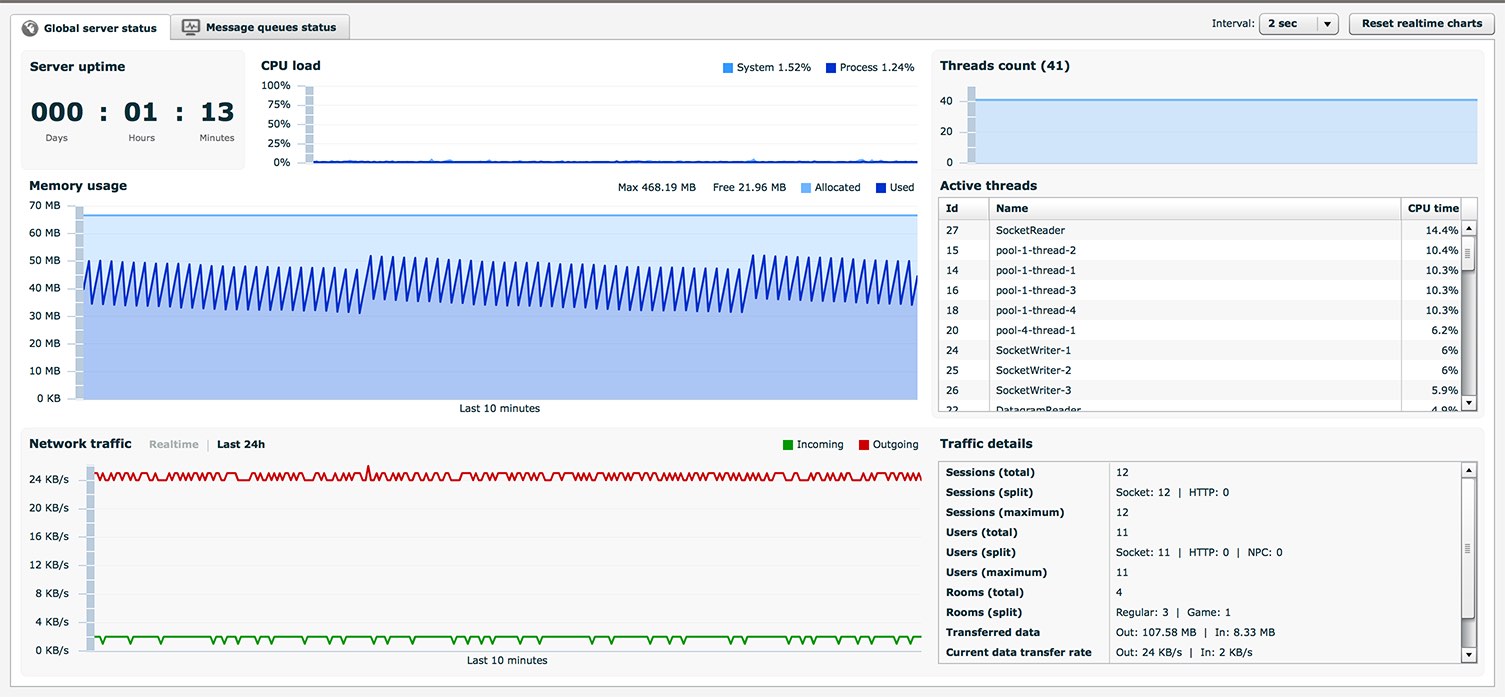 14:34:18,999 INFO [main] managers.SFSRoomManager - Room created: { Zone: BasicExamples }, [ Room: UdpGame, Id: 2, Group: default, isGame: true ], type = SFSRoom