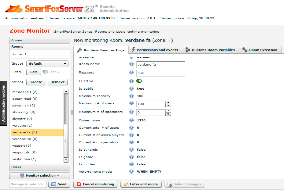 I'm having some issues with the way the new Smartfox handles rooms. I've created a MMORPG which is divided into a number of maps, each of these maps is it's own Smartfox Room. On entering a new map - a user will check to see if a smartfox room of that name already exists, if it doesn't it will create that room and then join, otherwise it will just join the existing room which ended