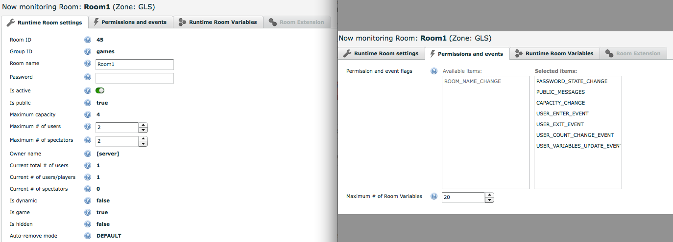 - Runtime room settings
